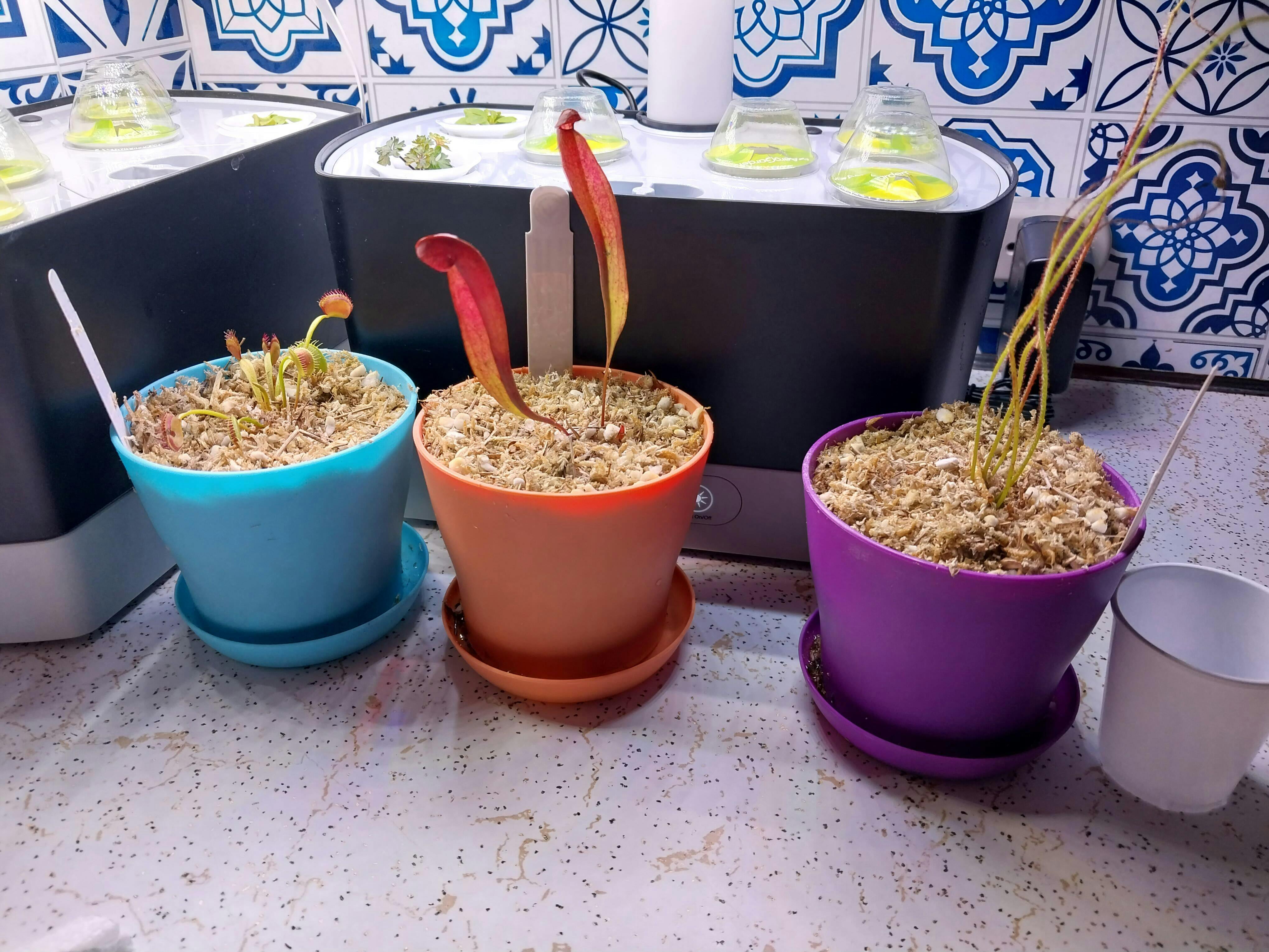 These temperate, North American natives all grow in the same conditions, and are some of the easier carnivorous plants. Outdoor growing is ideal. If potted, they will do nicely in a small tray on a well-lit window sill during active growing months. During winter months plants should be allowed dormancy and will resume vigorous trap production come spring.