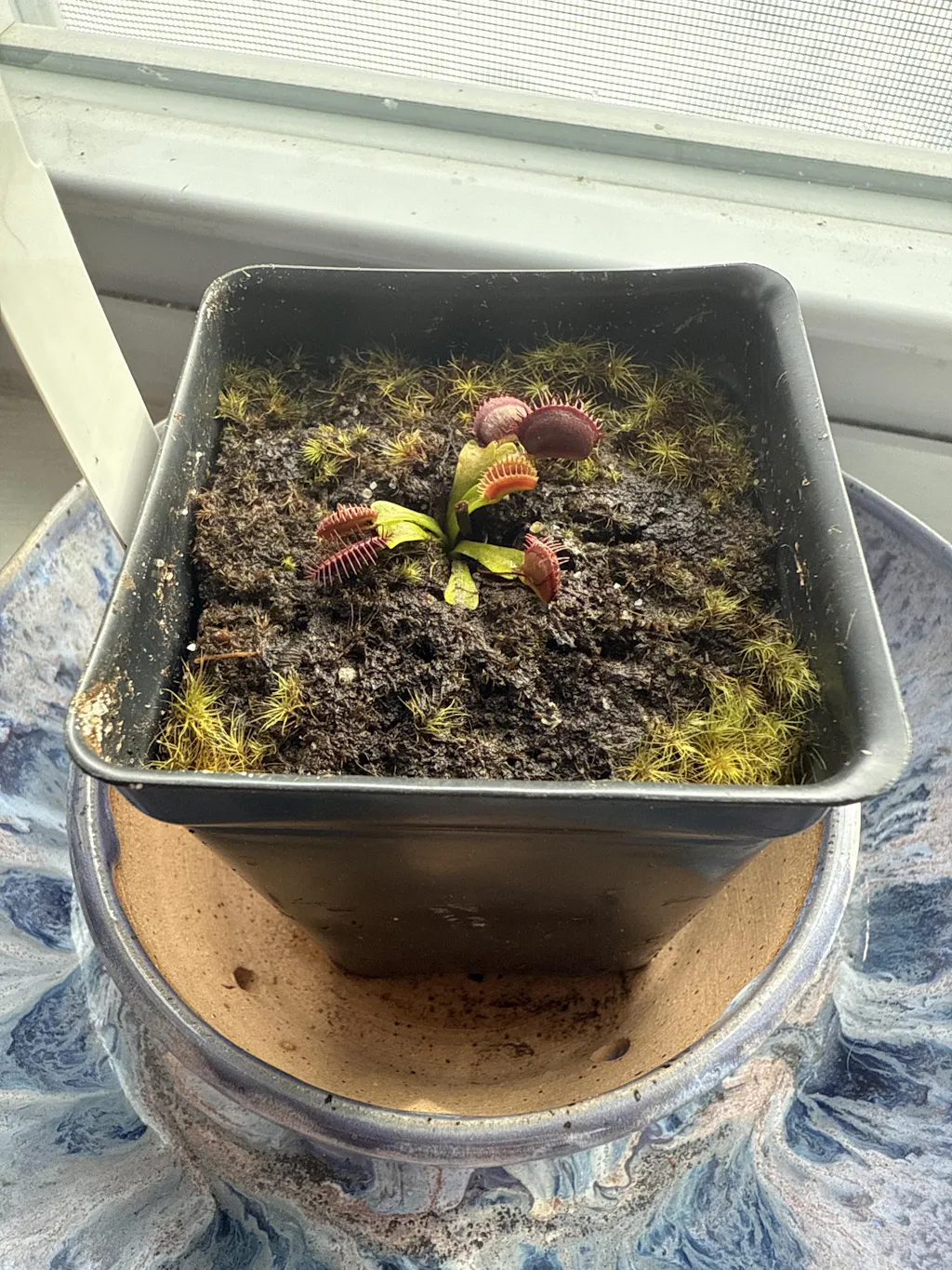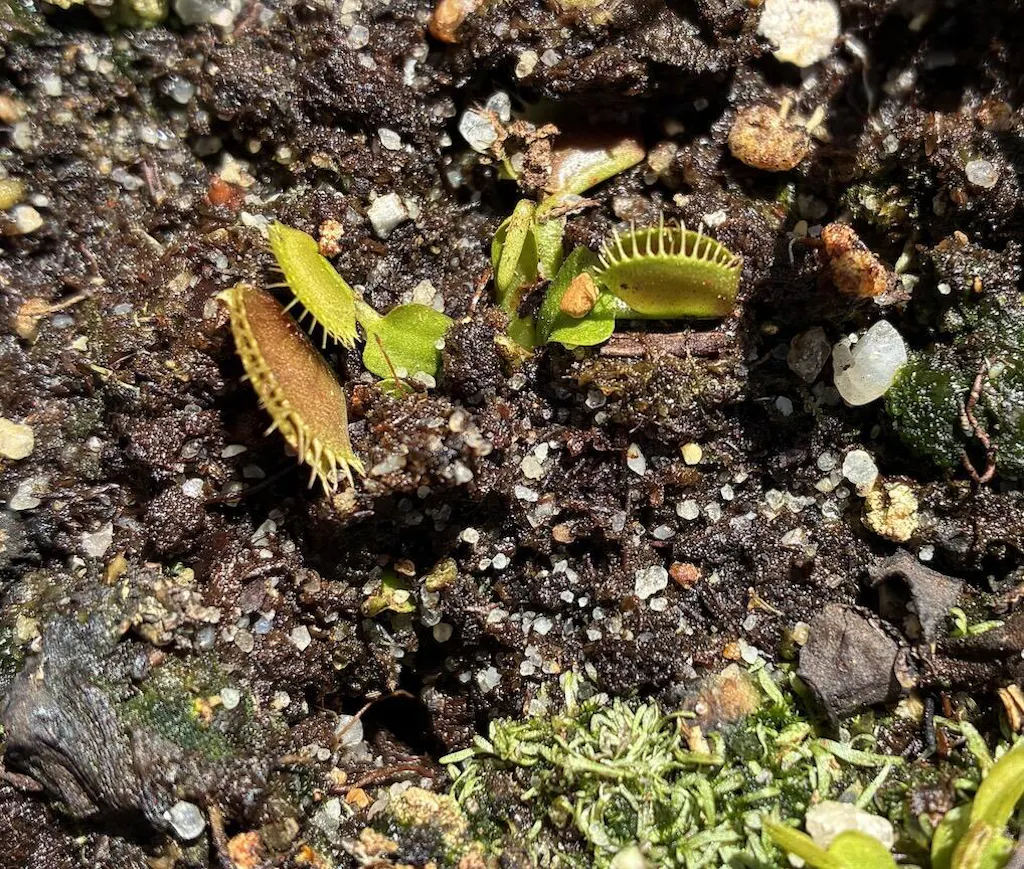 Venus Flytrap G14 is a a giant that readily produces large traps with deep burgundy red interiors. This red coloration extends into the cilia of mature plants, giving them a bright pink appearance. This cultivar is also known as "Dirk Ventham's Giant", and was originally grown by Graham Sadd in the UK.
